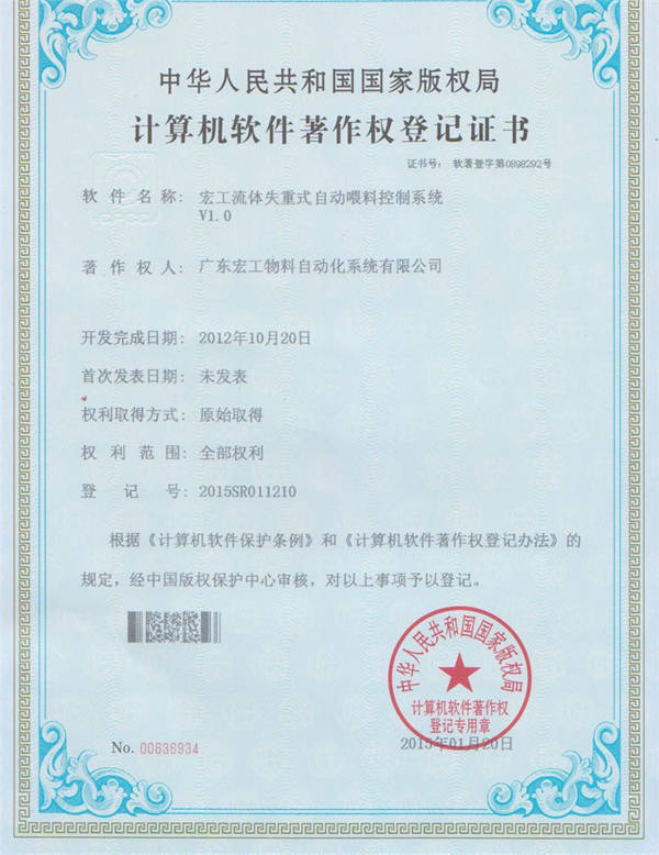 軟件著作權(quán)-宏工粉粒失重式自動喂料控制系統(tǒng)V1.0